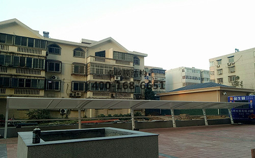 新鄉市北辰悅府車棚/頂棚膜結構、鋼結構設計、加工、運輸、安裝。