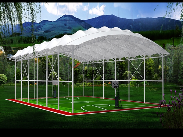 白天,陽光透過膜面使建筑物內充滿夜自然漫射光。夜晚,室內燈光透過膜面給空增添了夢幻般的夜景。當膜結構用于體育館、娛樂設施時,可以實現全天內的舒適相結合的理想的商業空間。